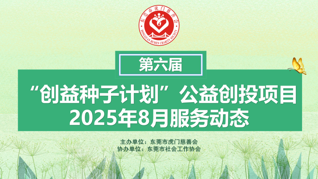 8月,虎门慈善会第六届“创益种子计划”公益创投项目资助的22个项目按计划稳步开展,在扶弱助残、为老服务、扶智扶志、救助帮困、社区服务等多个领域提供服务,满足不同群体的服务需求。全月共开展活动62场,当月直接受益人群11576人次,间接受益人群11925人次。本月共有2次媒体报道,其中1次镇街级报道,1次省级报道。