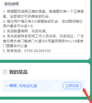 实物奖品需在兑奖时间内凭兑奖券前往东莞市虎门慈善会兑换;微信现金红包填写联系信息后,线上自动兑换至微信钱包。