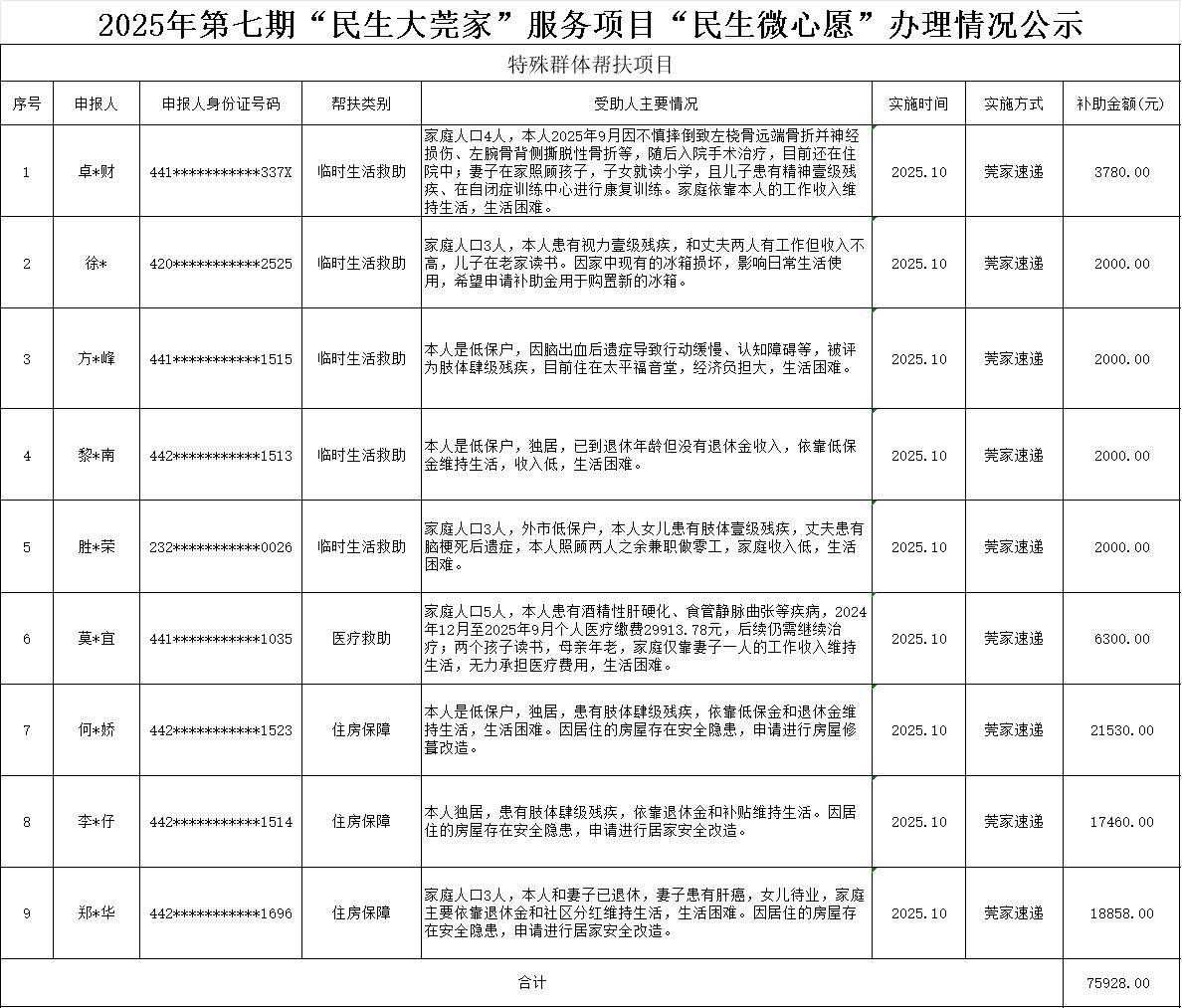 为体现公平、公正、公开的办事原则,现将2025年度第七期“民生大莞家”服务项目“民生微心愿”办理情况公示如下: