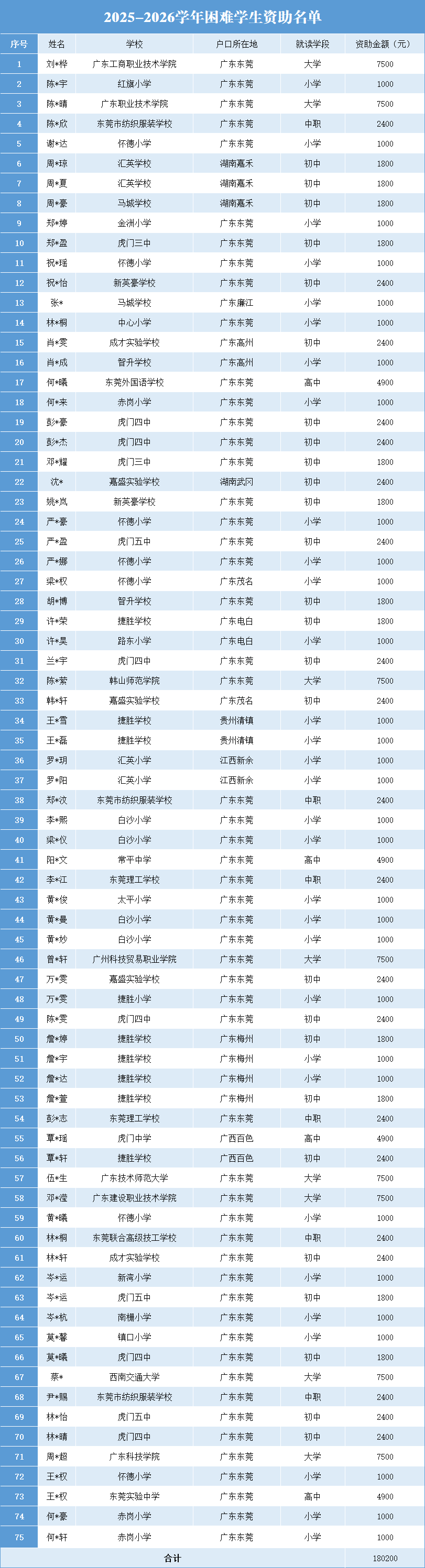 虎门慈善会关于2025-2026学年“海燕计划”困难学生资助名单的情况公告