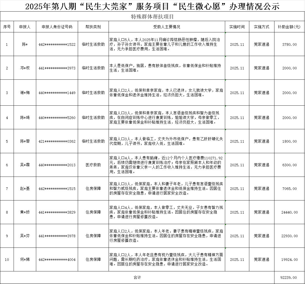 为体现公平、公正、公开的办事原则,现将2025年度第八期“民生大莞家”服务项目“民生微心愿”办理情况公示如下: