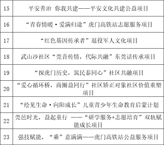 虎门慈善会自2019年启动首届“创益种子计划”公益创投项目,至今已经开展了六届,累计资助127个项目,支出约1103.94万元,直接受益对象约44万人次,活动超过2100场。为更好地带动社会各界参与公益慈善事业的主动性和积极性,鼓励社会组织不断提升社会服务的创新性及多元化,扩大慈善公益事业的辐射半径,力求满足多样化的社会需求,以不断促进虎门慈善公益事业的发展,虎门慈善会于2025年10月启动第七届“创益种子计划”公益创投项目。截至2025年11月13日,我会共收到由13个申报主体申报的26个项目。经初审,以下26个项目将入围网络投票及评审环节。