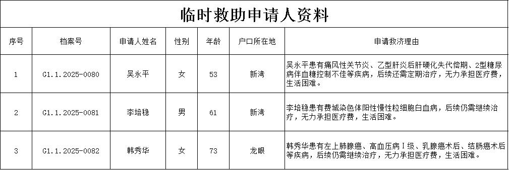 虎门慈善会2025年第八期临时救助申请人基本情况公示