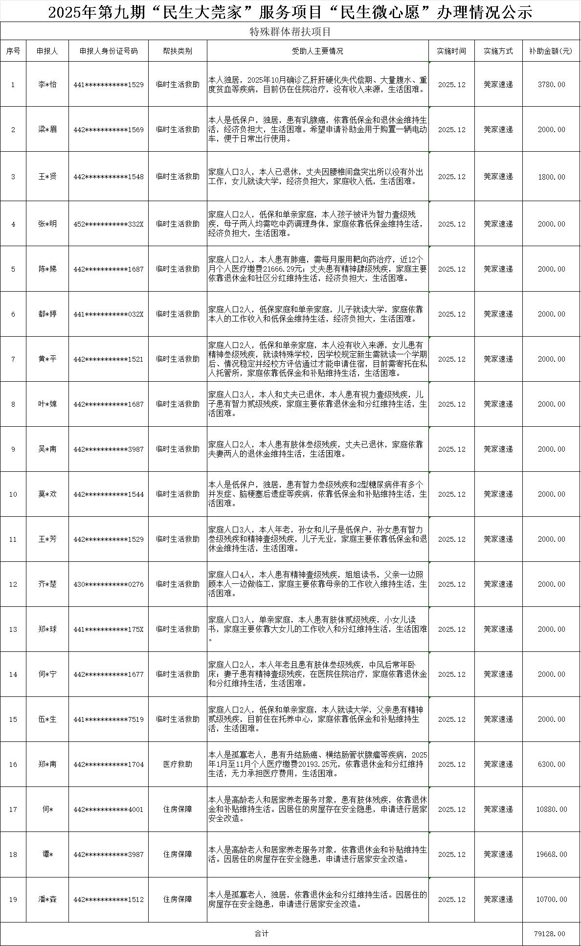 为体现公平、公正、公开的办事原则,现将2025年度第九期“民生大莞家”服务项目“民生微心愿”办理情况公示如下: