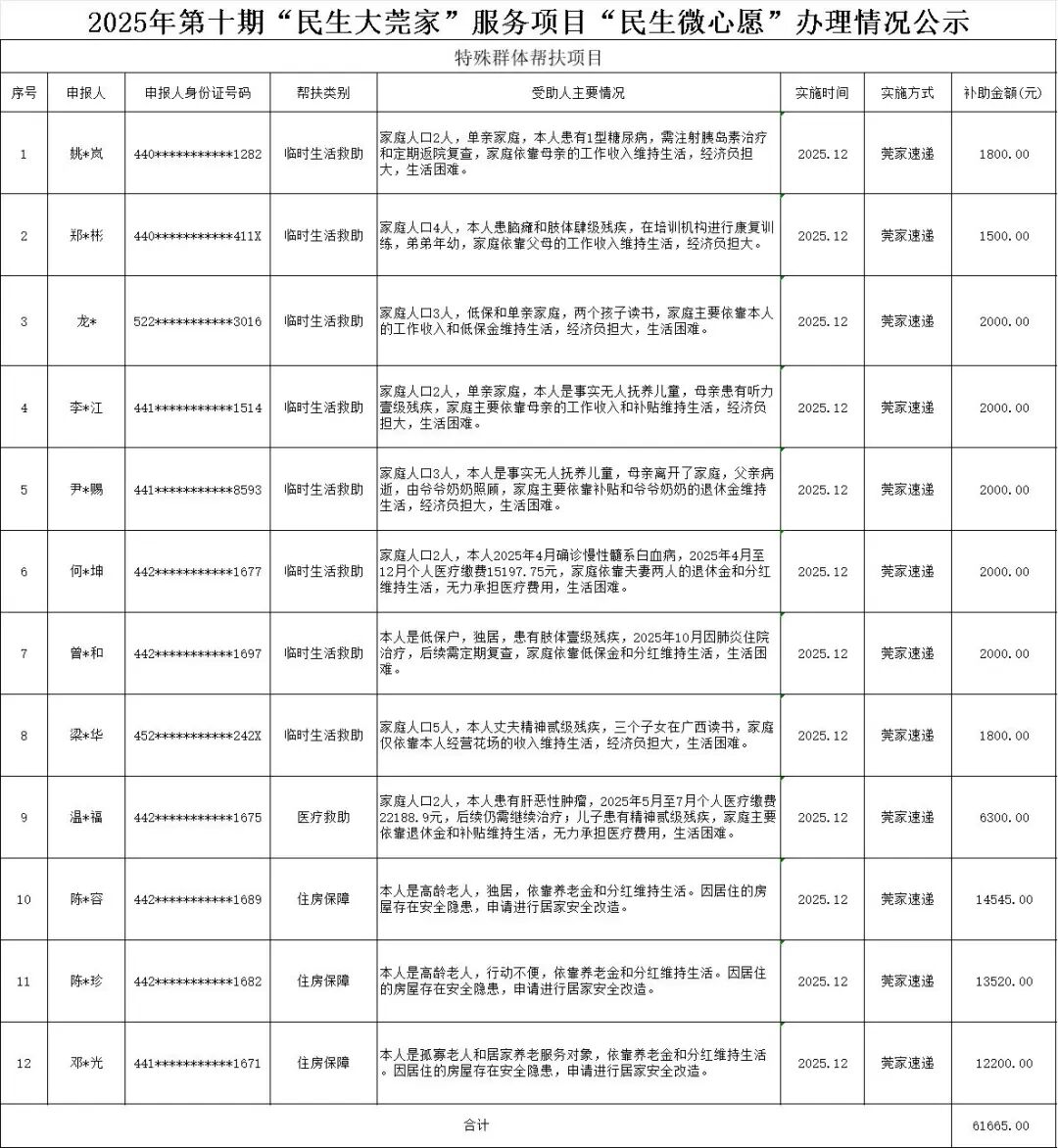为体现公平、公正、公开的办事原则,现将2025年度第十期“民生大莞家”服务项目“民生微心愿”办理情况公示如下:
