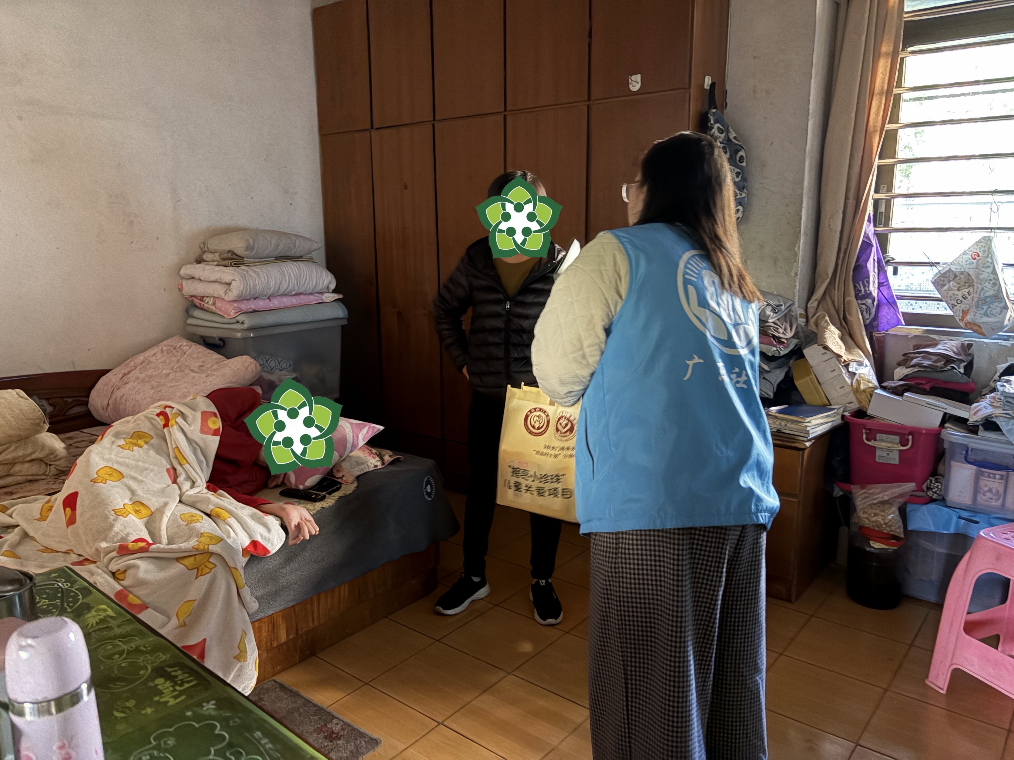 12月14日,双百社工依托赤岗站点的物资资源,走访慰问社工点辖区内重病困境儿童家庭1户,派发驿站慰问物资1份。