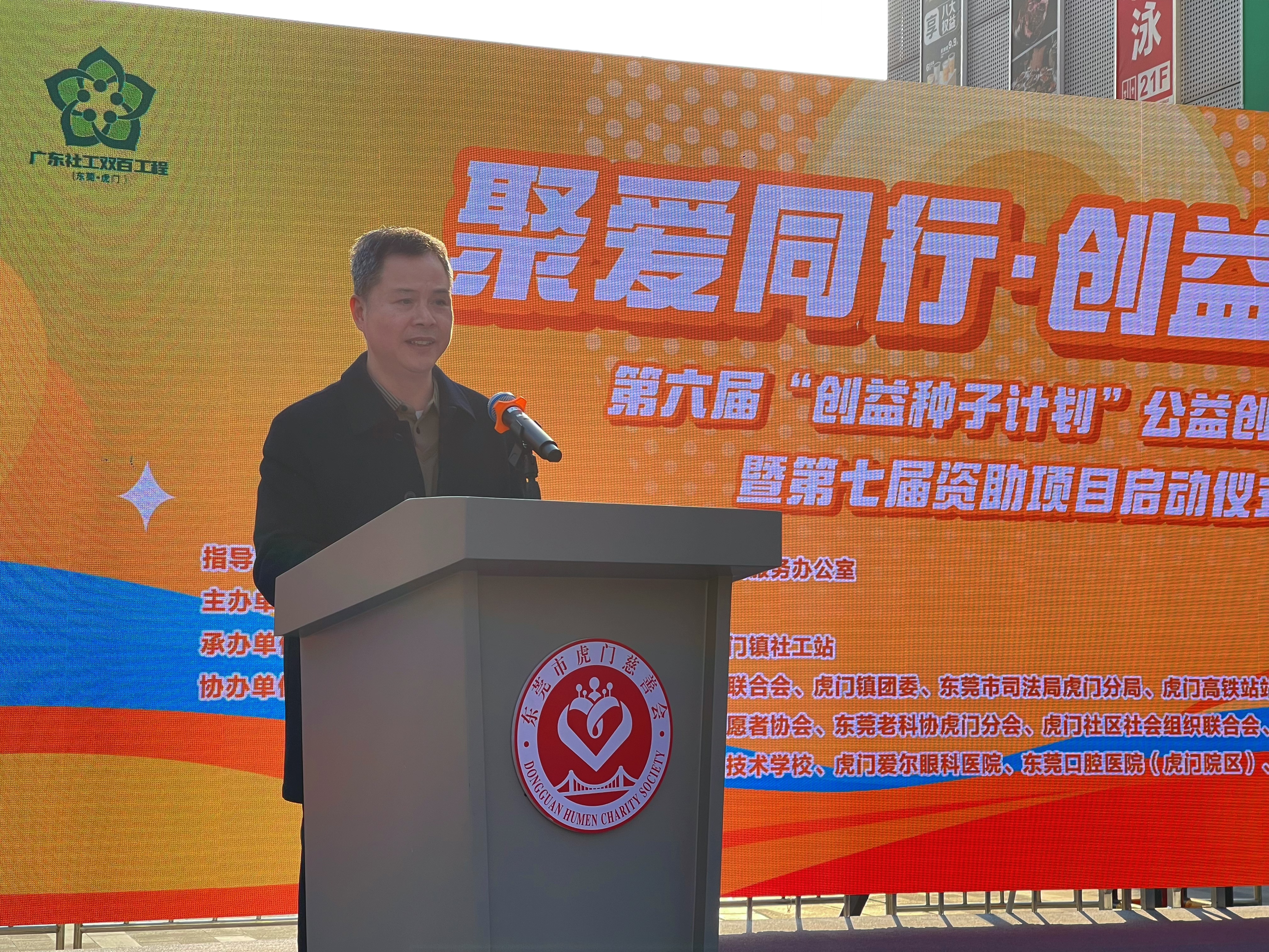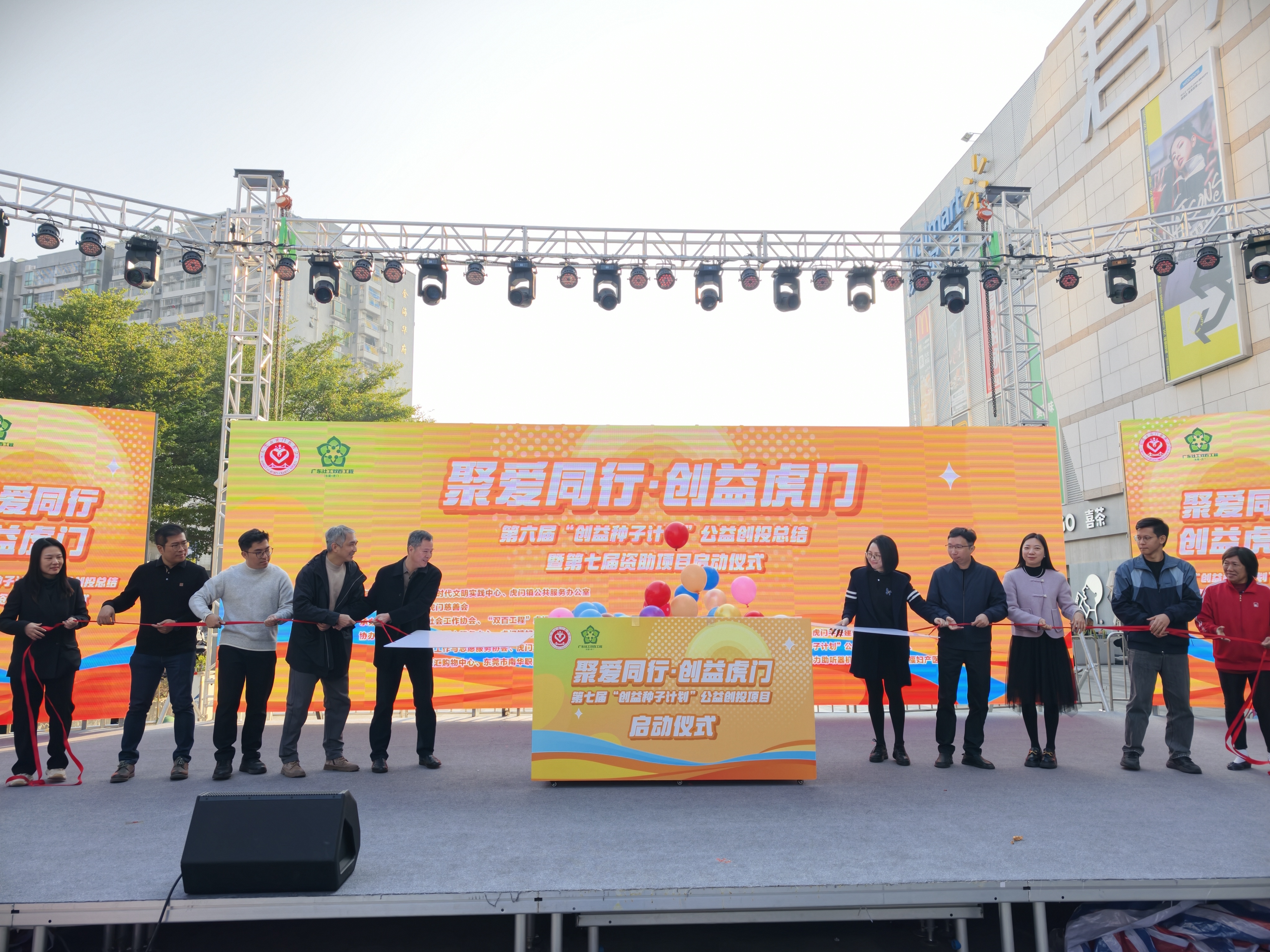 2019年至今,虎门慈善会已成功举办了六届“创益种子计划”公益创投项目,六载耕耘,硕果累累。为总结展示第六届公益创投的22个获资助项目的成果,并集中启动第七届的21个获资助项目,进一步凝聚社会公益力量,擦亮“聚爱同行,创益虎门”的慈善文化底色,推动虎门慈善事业的高质量发展,2026年1月3日,由虎门镇新时代文明实践中心、虎门镇公共服务办公室指导,东莞市虎门慈善会主办,东莞市社会工作协会、“双百工程”虎门镇社工站承办的第六届“创益种子计划”公益创投总结暨第七届资助项目启动仪式在虎门镇君乐汇购物中心户外广场隆重举行。
